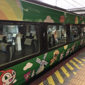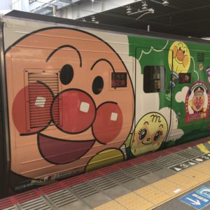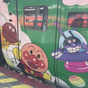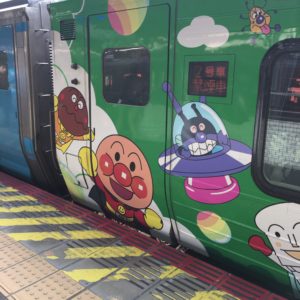 ちょうど丸亀駅で電車待ちをしていたらアンパンマンのイラストの特急が通過しました!