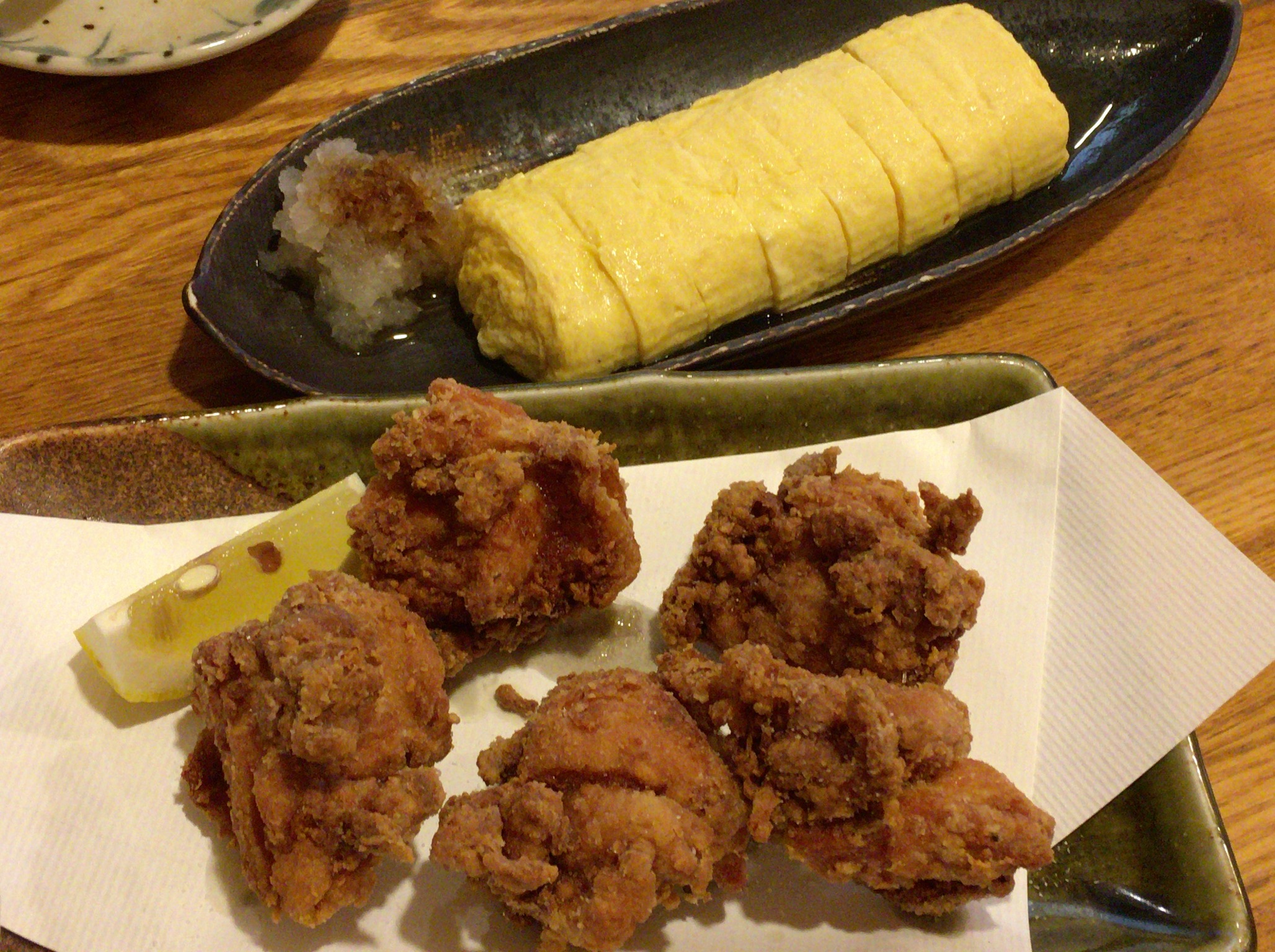 だし巻き卵と鶏のから揚げを注文します。3歳の娘用ですね。