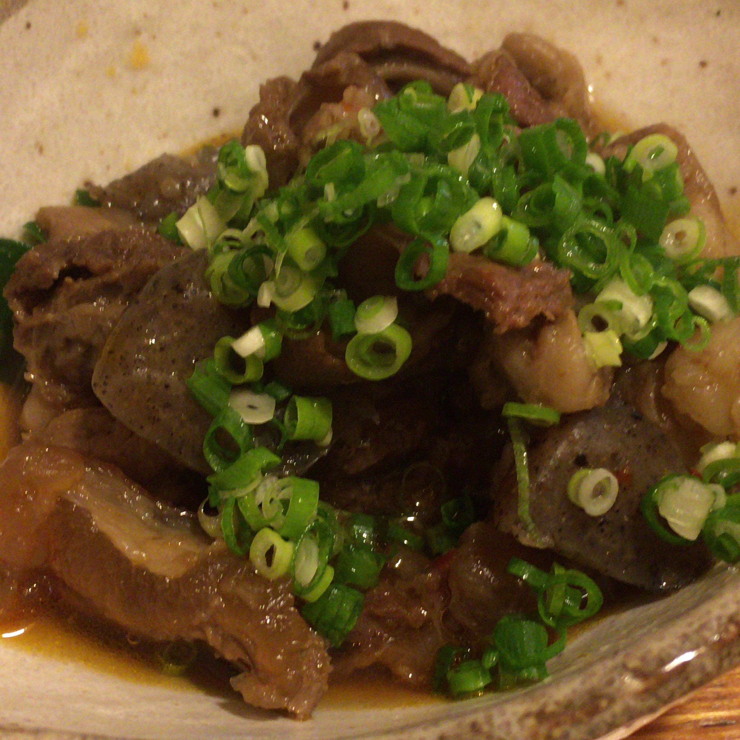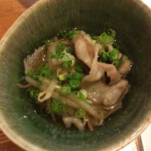 まずは、つきだしに鳥の煮物が出てきました。娘はパパの分も食べましたね。鶏肉はすきなんだな。