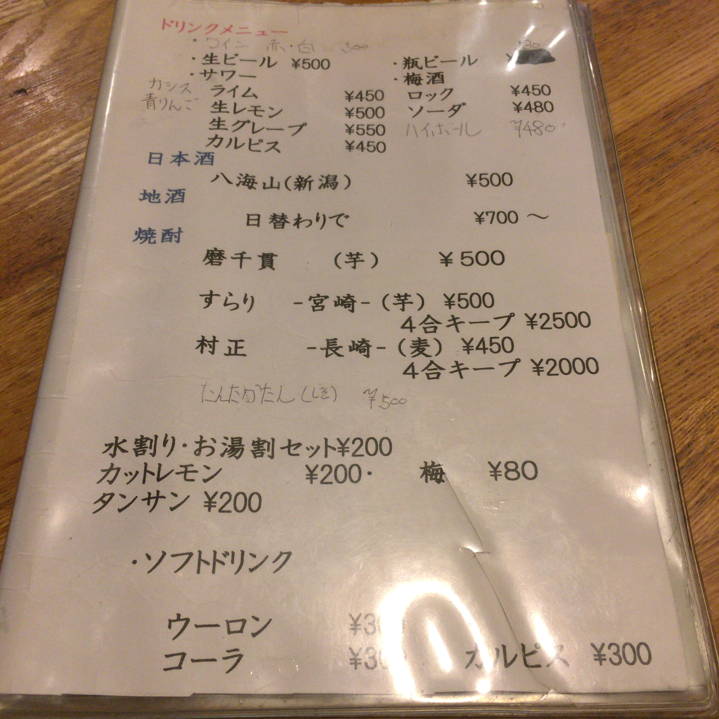 夕方17:30頃に行くと煙草を吸ってる人もいないし、いい時間です。土曜の夕方に家族で居酒屋なんて、ぼくの小さいころには想像もできませんでした。