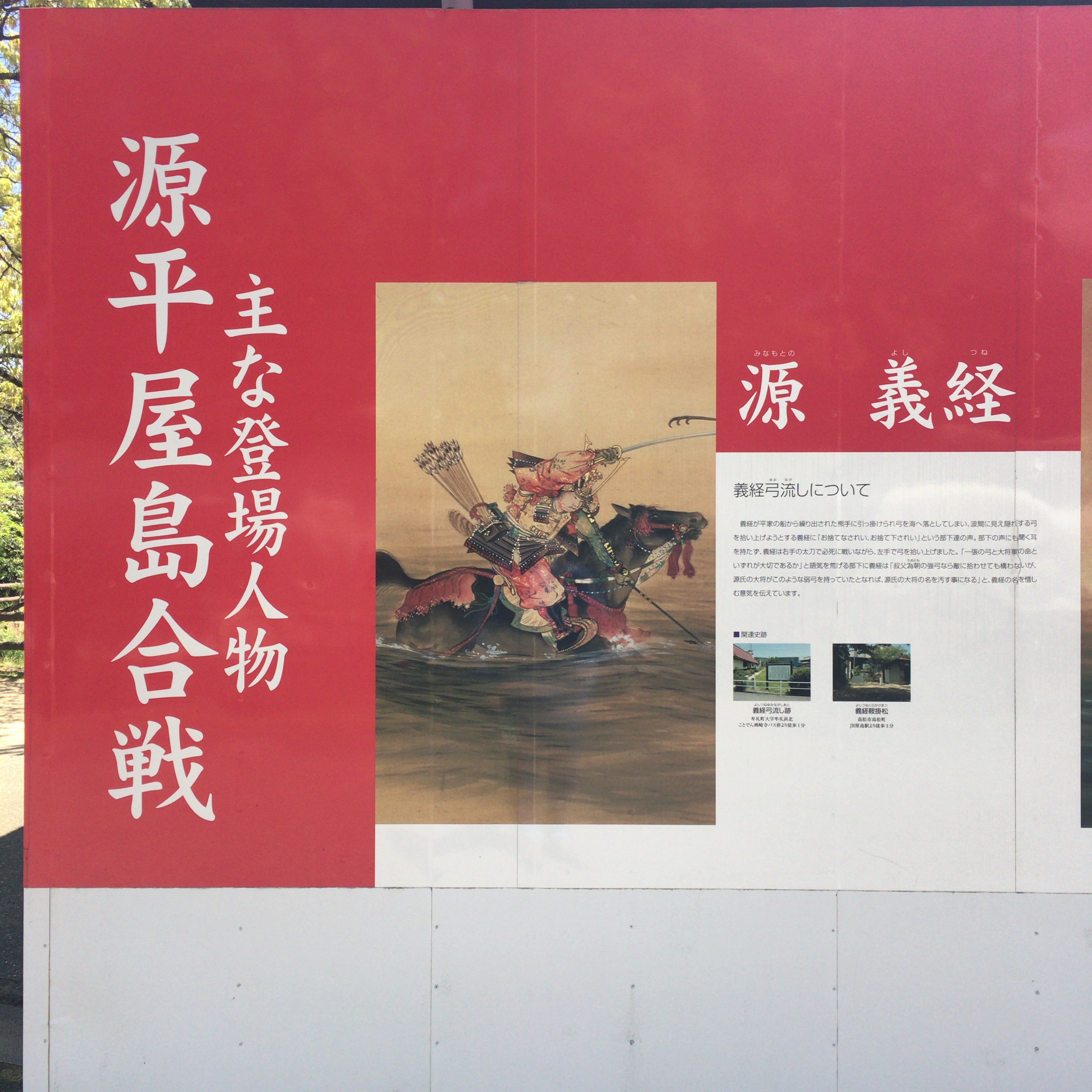 ここ屋島は源平合戦で一番面白い戦場で、源義経が屋島に陣取る平家に対して夜襲をしかけた場所。ここ屋島ではどこに行っても源平のことが記載されています。義経ファンにはたまらない場所ですね。