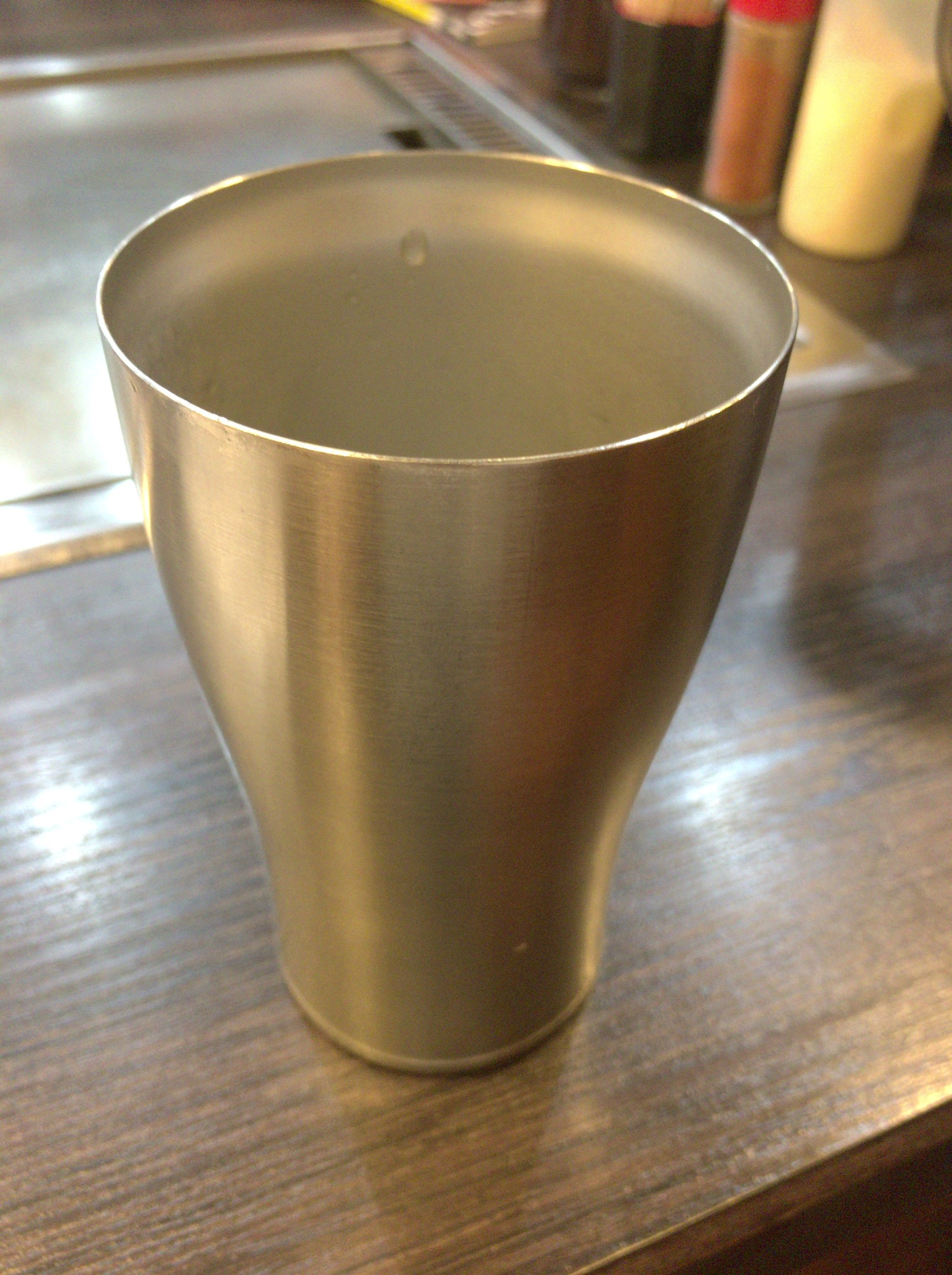 このお店のすごいとことをさらに1個見つけました。この水を入れているグラスですが、中が真空になっていて、水が冷たいまま結露もしないまま飲めます。