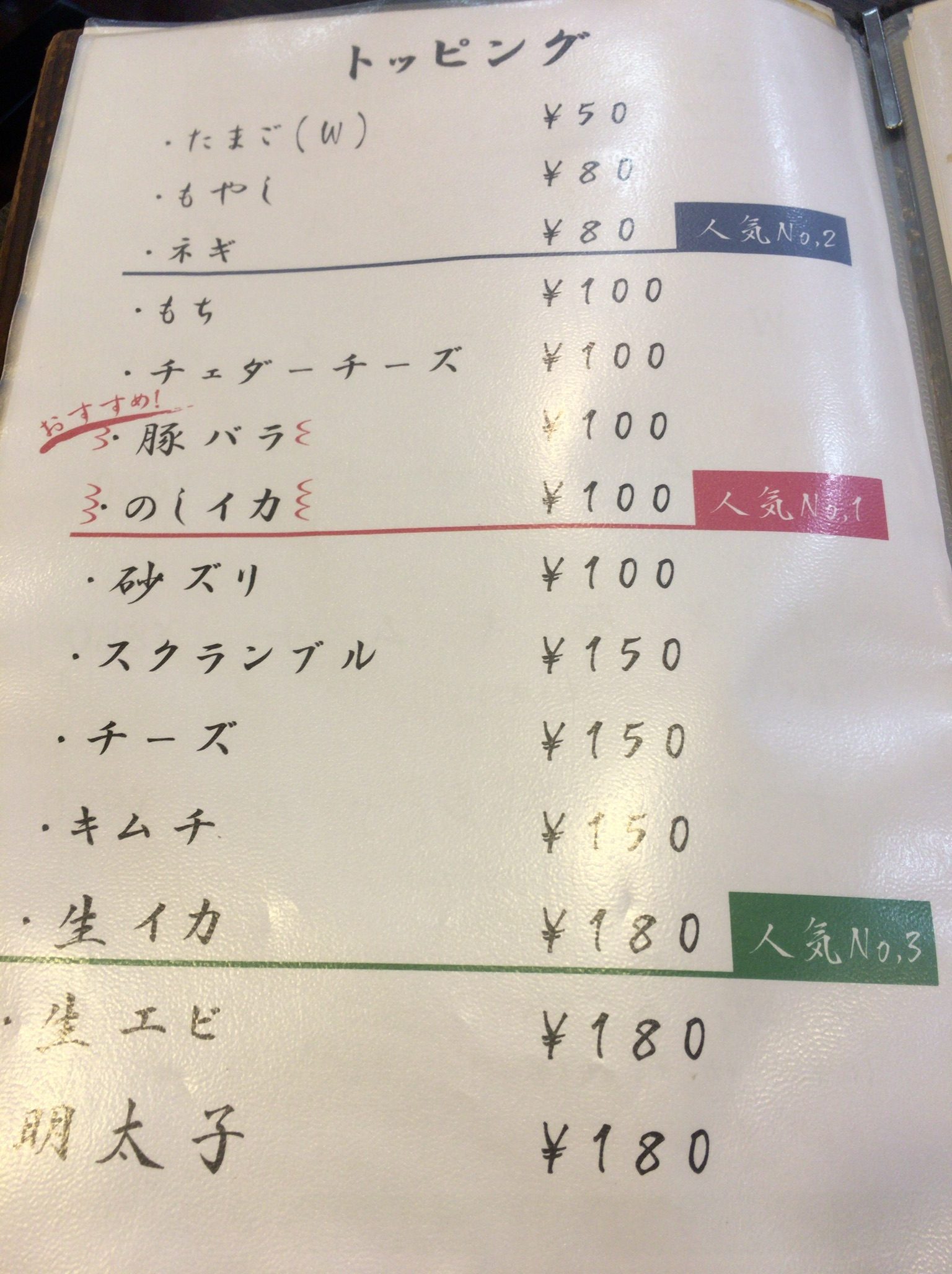 十々(じゅじゅう)スペシャルには、イカ、エビ、豚、モチが入っています。ぼくはこのモチを砂ずりに変更しました。