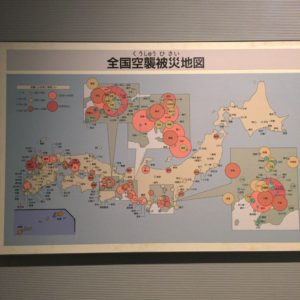 太平洋戦争で空襲された資料もあって、この空襲被災地図をみると、日本全国の都市で空襲されていたのが分かります。
