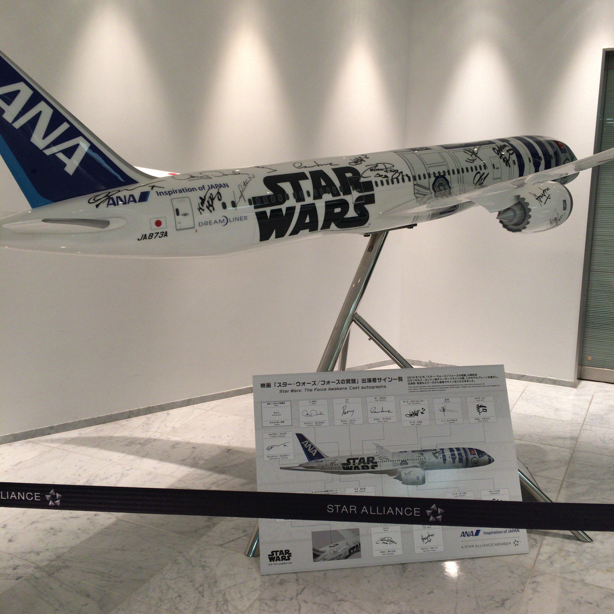 まず、入場すると、スターウォーズ機体のサインオブジェが設置されていました。とてもきれいに感じます。