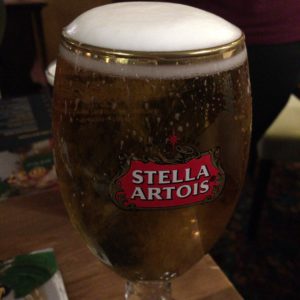 毎度おなじみビールですが、今回はSTELLA ARTOIS(ステラアルトラ)です。ちなみにイギリスではついで来るグラスとビールの中身が一致しています。日本だと考えられませんね。グラスはキリンでも中身はサッポロとかあるじゃないですか。さすがジェントルマンの国です。素晴らしい。