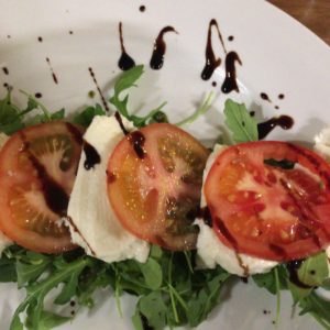 Caprese Salad(カプレーゼサラダ)を注文!イタリアにあるカプリ島のサラダという意味です。モッツアレラチーズとトマトが主役のサラダです。