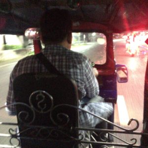 人生初のトゥクトゥクです。安いエンジン音がこの町に響きますよ。風を感じるので答案アジアの夜って感じです。