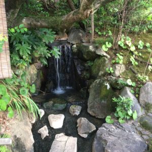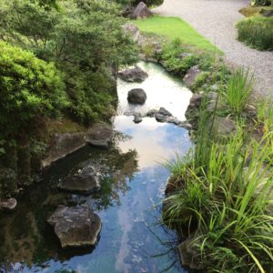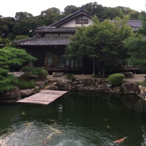 庭の池にはたくさんのコイが泳いでいます。コイにえさをあげれそうなのですが、エサが売り切れでした。