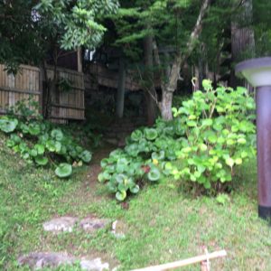 庭から見る宿です。風情がありますよね。