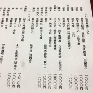 日本酒もあります。今回は金雀の五拾五磨 堀江酒場をいただきました。いいですね。さらりとしていて飲みやすいです。こんな日本酒が好きです。